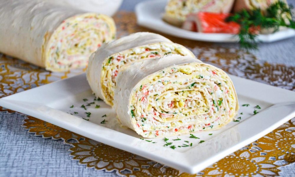 Рулет из лаваша с крабовыми палочками и яйцом